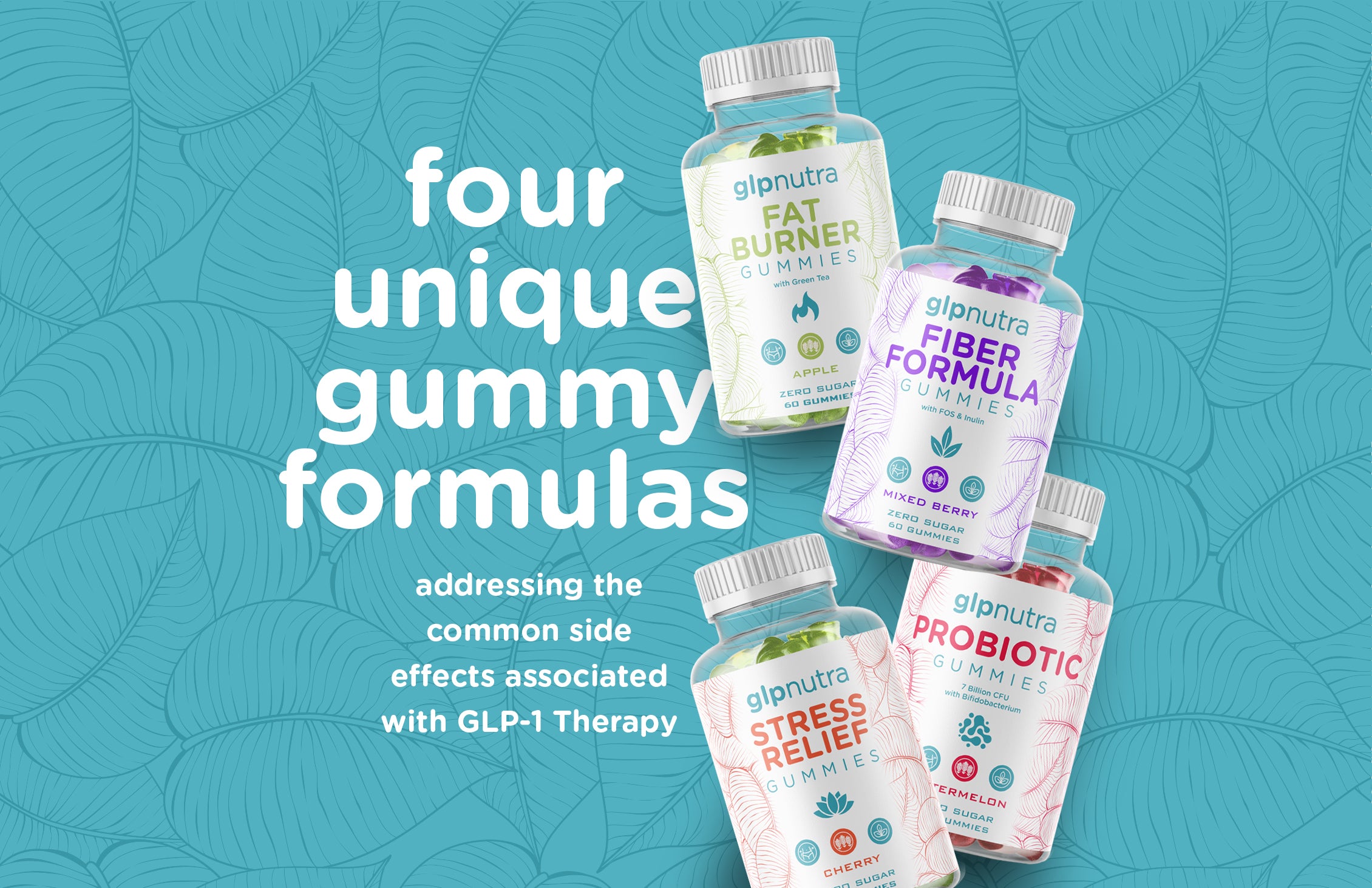We’re proud to offer four unique gummy formulas, each addressing the common side effects associated with GLP-1 Therapy. Use one or all of them only once daily with meals or as a snack to help make your weight loss journey a more pleasurable experience.